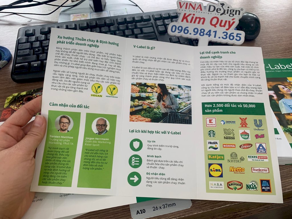 Kim Quý, In brochure A4 cấn 2 đường gấp 3, brochure giới thiệu dịch vụ cấp giấy chứng nhận sản phẩm - VINADESIGN