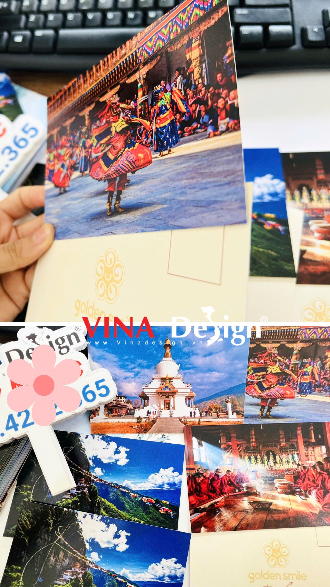 Sản phẩm in bưu thiếp, in postcard du lịch Bhutan, quy cách in: