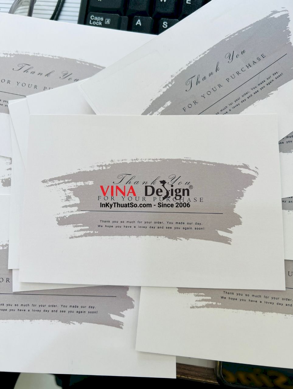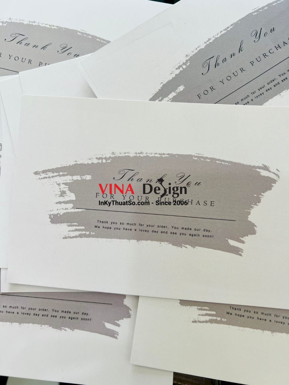 VINADESIGN - Thiết kế & in thank you card, in thiệp cảm ơn, in card cảm ơn theo yêu cầu - Mang đến những mẫu card cảm ơn mua hàng đẹp, trang trọng, chất liệu in giấy Couche, Bristol, Ford, giấy Kraft, giấy Art mỹ thuật cao cấp - In card cảm ơn khách hàng, in thiệp cảm ơn giá rẻ từ xưởng in trực tiếp, báo giá in mọi số lượng, có gửi hàng đi các tỉnh từ TPHCM.