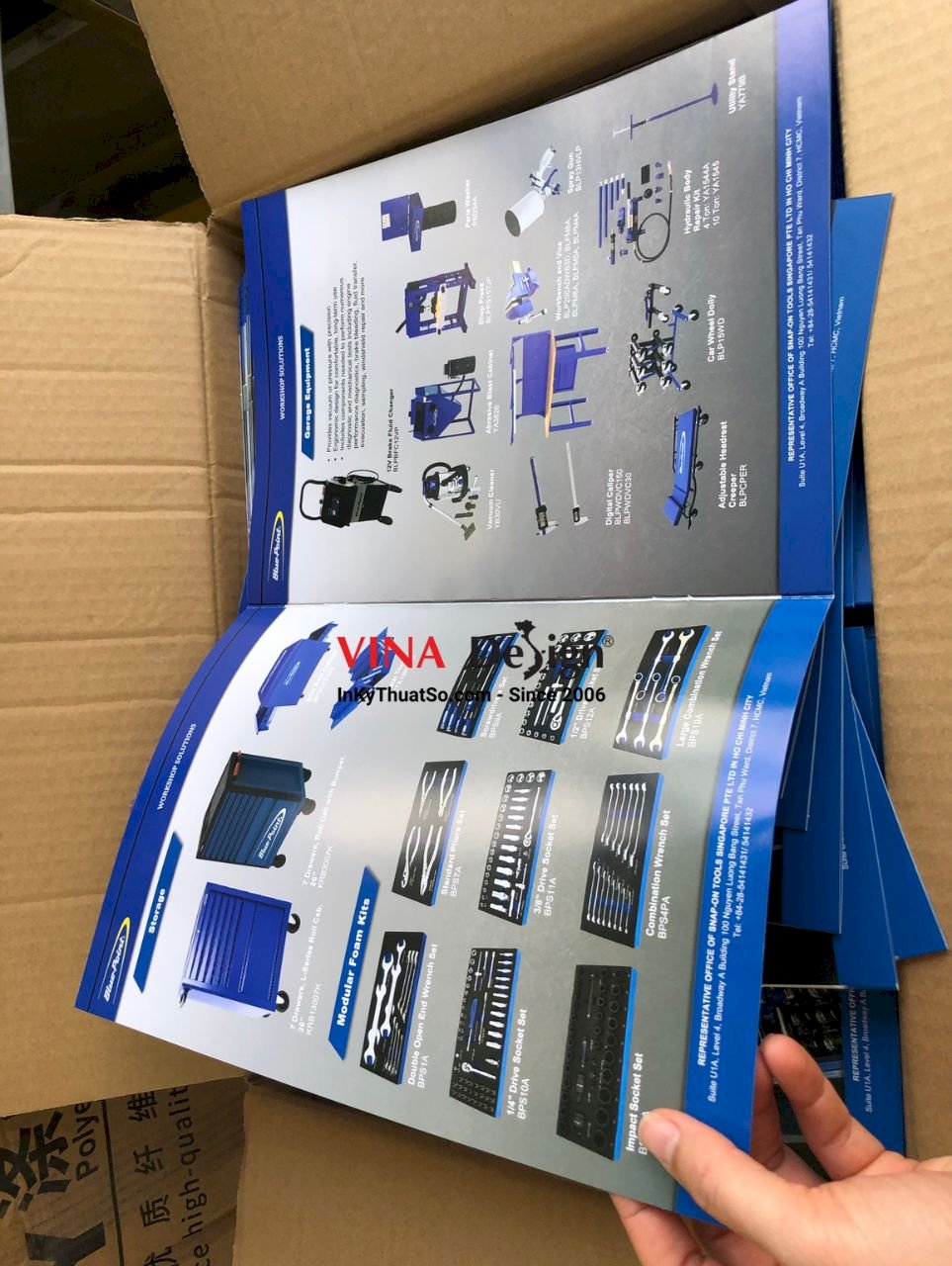 Sản phẩm in catalogue sản phẩm thiết bị cầm tay nhà xưởng, quy cách in: