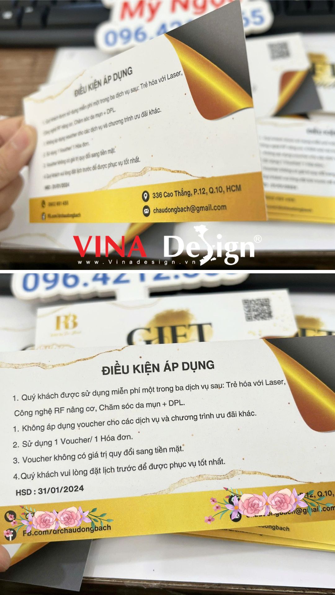 👉 VINADESIGN - In ấn voucher, thẻ quà tặng, thẻ ưu đãi khách hàng, phiếu giảm giá theo yêu cầu - Thiết kế độc quyền, sáng tạo theo ý tưởng khách hàng ✅ Chất liệu giấy cao cấp, in ấn sắc nét ✅ Giá tận xưởng, in càng nhiều giá càng rẻ - Nhận in đơn hàng số lượng ít - Có gửi hàng đi các tỉnh từ TPHCM.