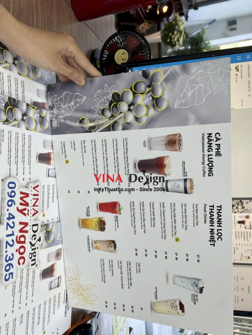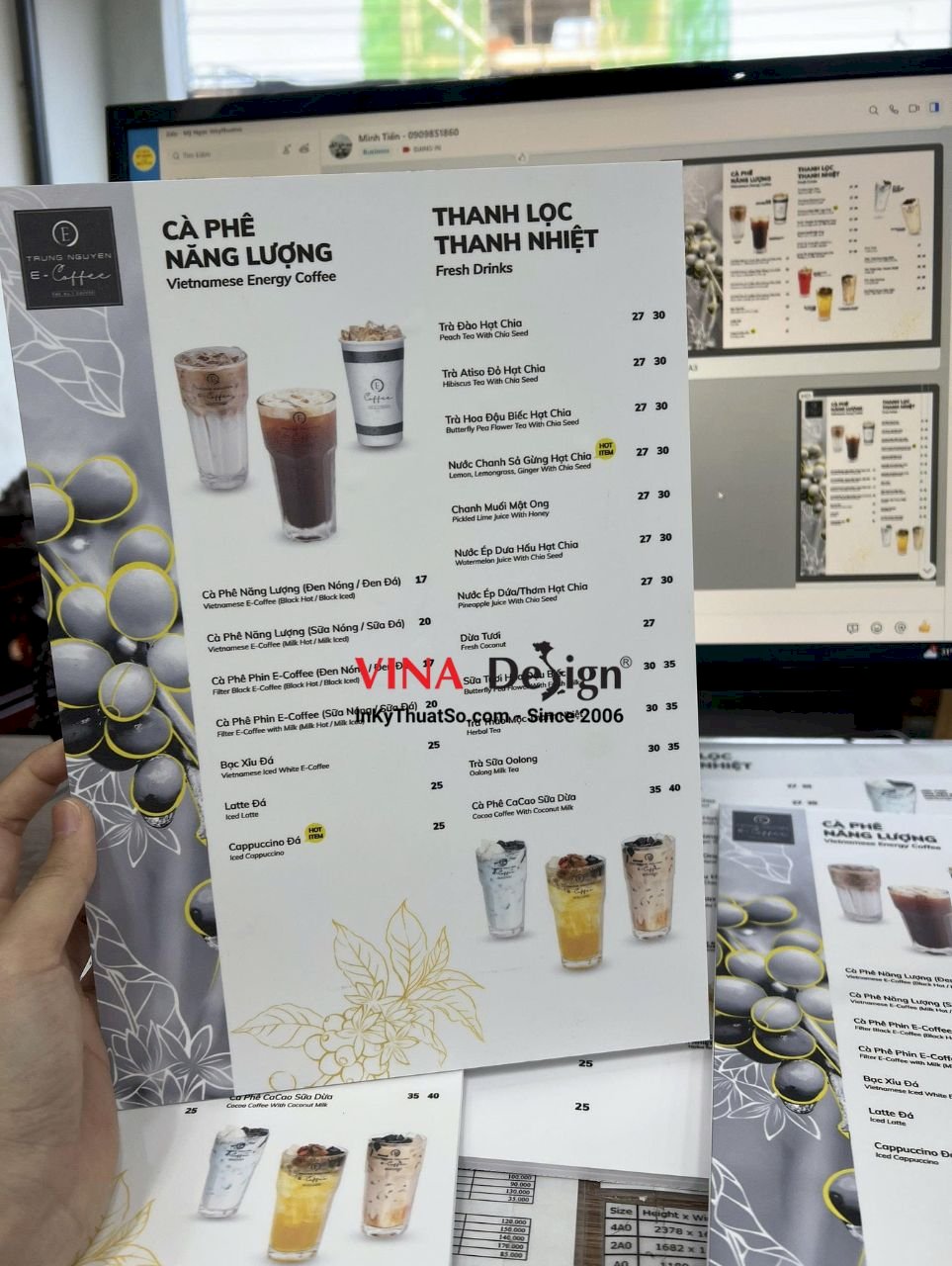 Sản phẩm in menu cafe Trung Nguyên E-Coffee, quy cách in: