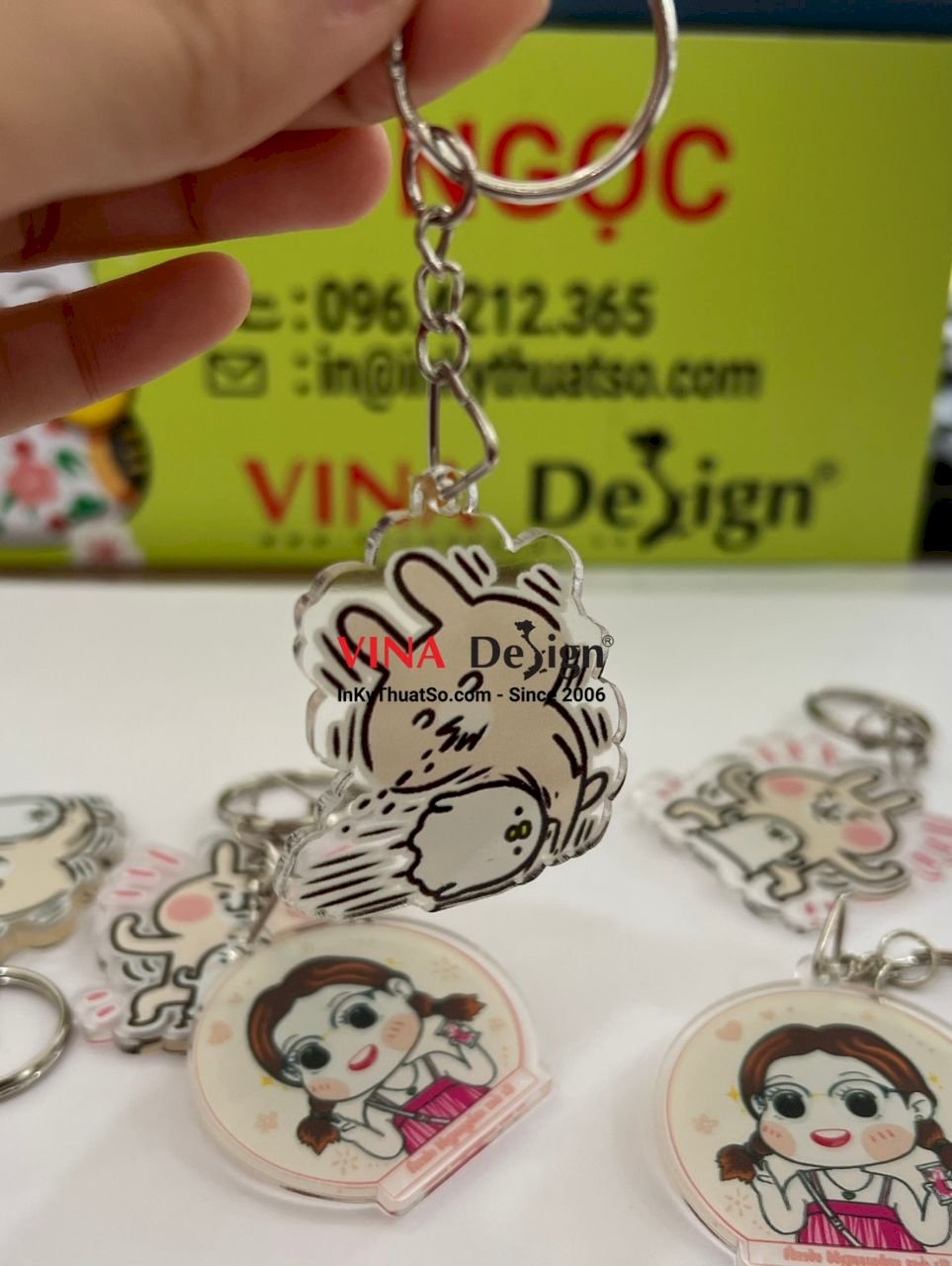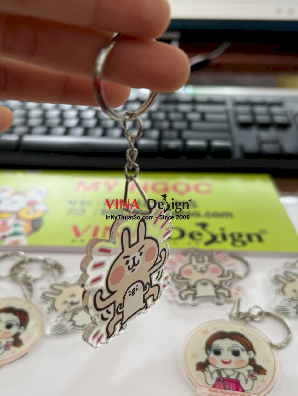 👉 VINADESIGN - Thiết kế & in móc khóa mica theo yêu cầu - Móc khóa mica in UV rõ đẹp, mực in bền màu lâu phai - In móc khóa mica 2 mặt cắt CNC theo hình ảnh in ấn thẩm mỹ, sắc nét - Xưởng in móc khóa mica TPHCM nhận in mọi số lượng, kích thước, báo giá nhanh, có gửi hàng đi tỉnh, gửi hàng quốc tế.