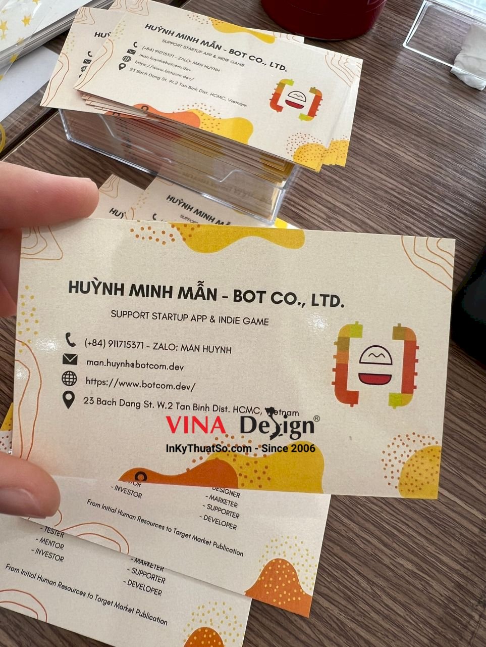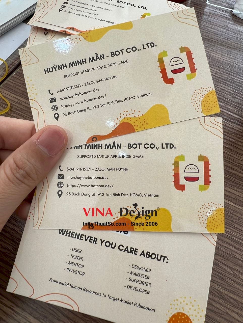 VINADESIGN - Xưởng in namecard đẹp, giá rẻ TPHCM - Nhận in name card nhanh lấy gấp trong ngày số lượng ít - In name card giấy mỹ thuật, giấy Couche 300gsm dày cứng, tấm danh thiếp đẹp chỉn chu - Công nghệ in nhanh kỹ thuật số sắc nét, chuẩn màu - Liên hệ đặt in trực tiếp, online dễ dàng, báo giá nhanh.