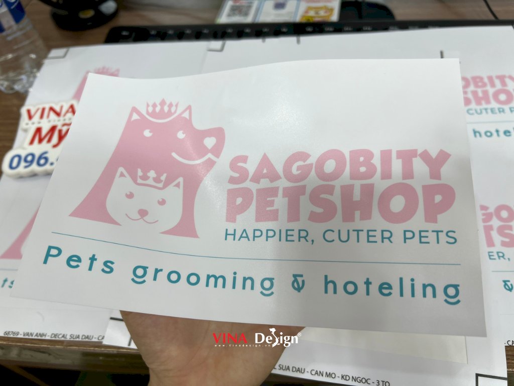 Sản phẩm in nhãn Decal cho cửa hàng thú cưng, quy cách in: