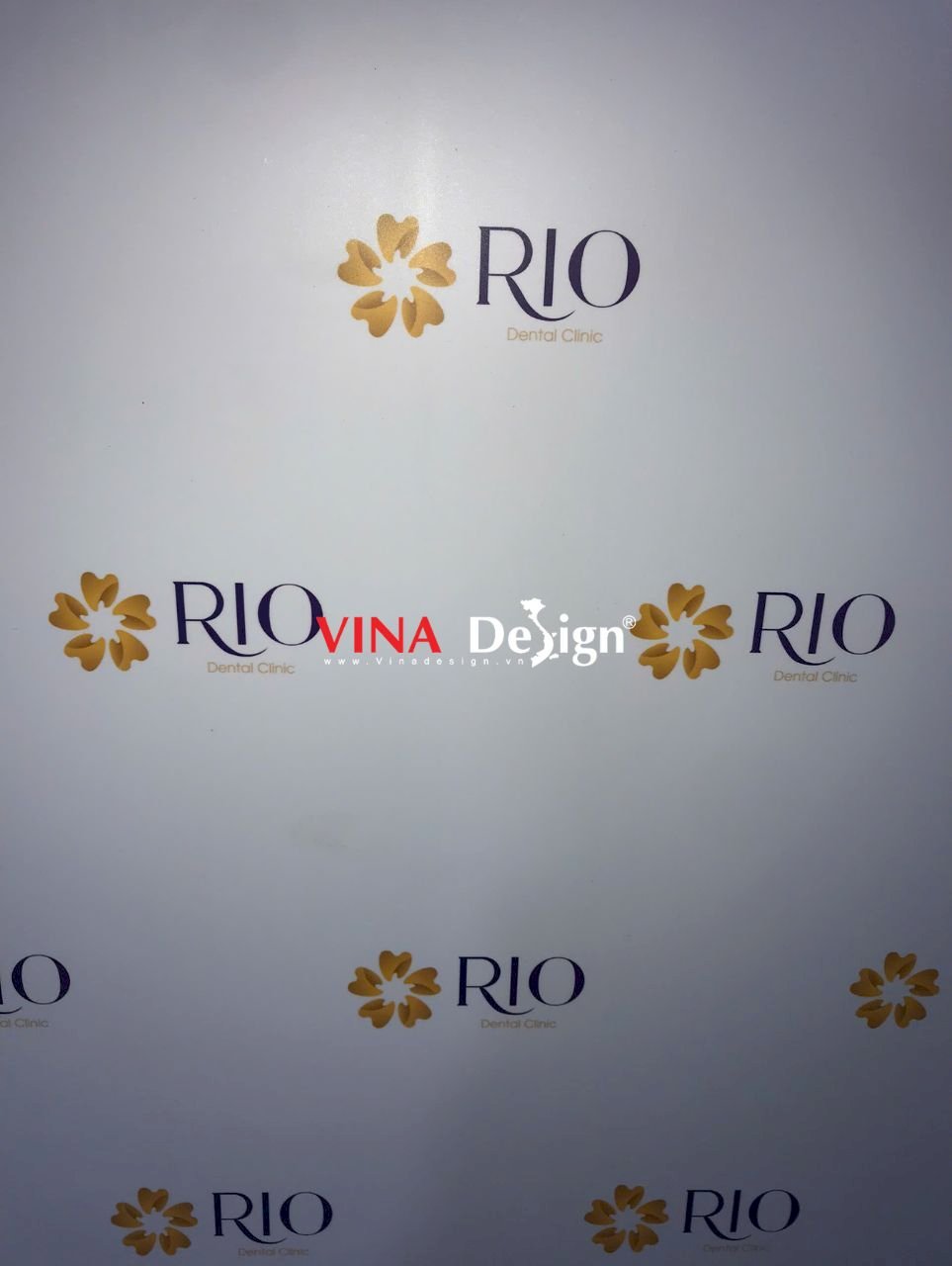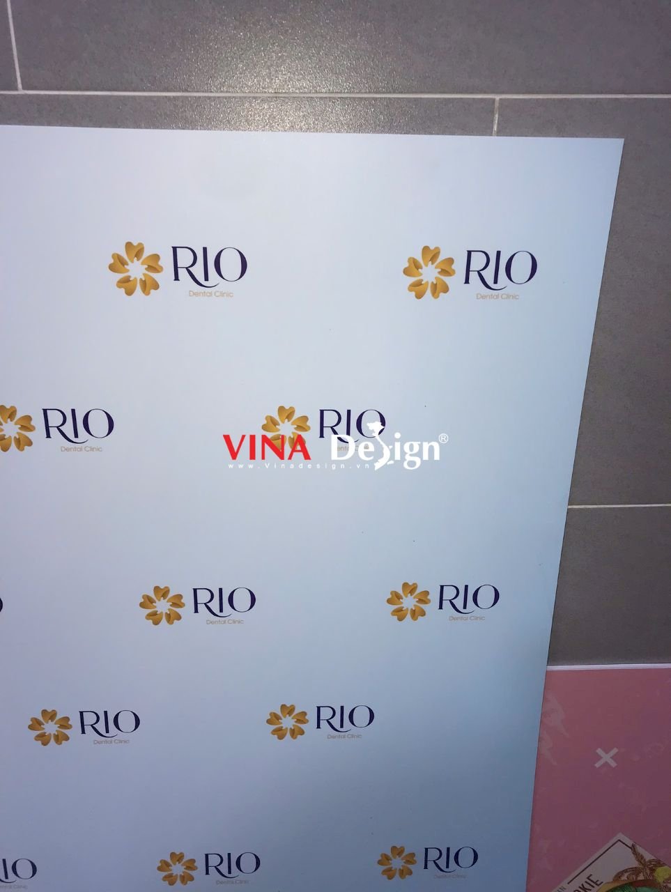 Sản phẩm in phông nền logo phòng khám nha khoa quốc tế Dental Clinic, quy cách in: