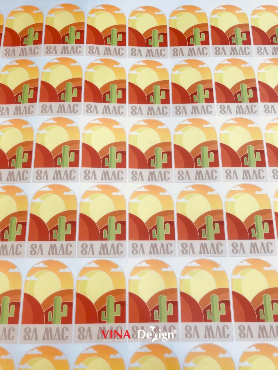 Sản phẩm in sticker decal sữa cán mờ chống nước, sticker sa mạc cây xương rồng, quy cách in: