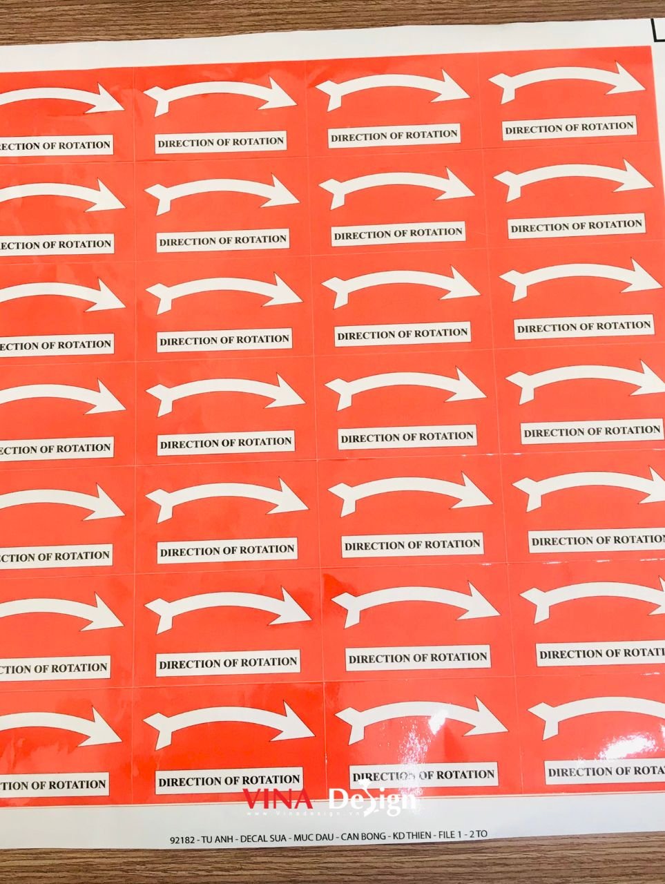 Sản phẩm in tem chỉ dẫn Direction of Rotation, quy cách in:
