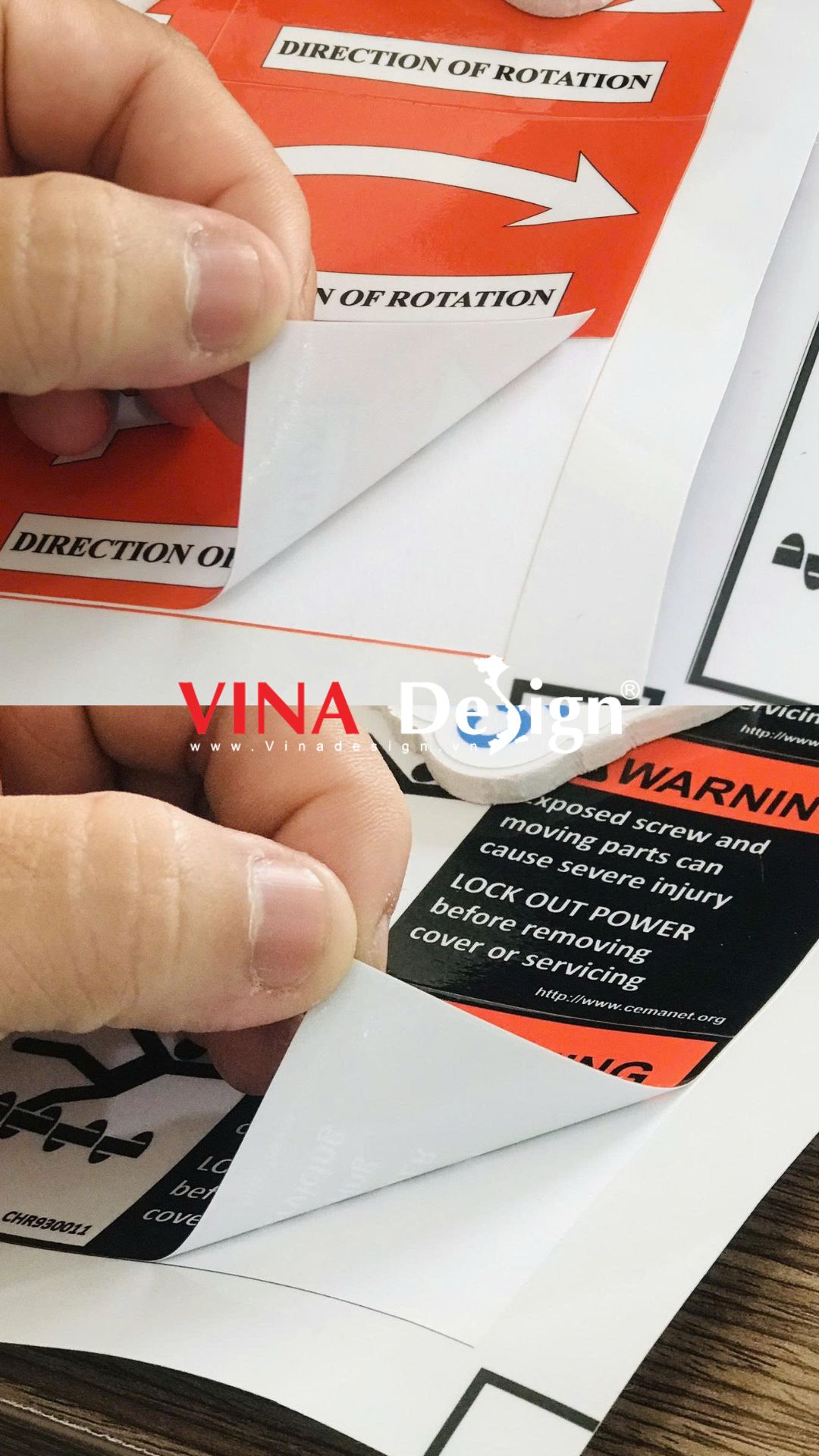 VINADESIGN - Xưởng in ấn tem nhãn Decal giá rẻ TPHCM - Thiết kế & in tem chỉ dẫn, hướng dẫn sử dụng sản phẩm, nhãn dán cảnh báo chú ý nguy hiểm.... Chất liệu Decal nhựa chống thấm nước, keo dán chắc, có gia công cắt bế sẵn lột dán nhanh dễ dàng - Chi phí in Decal tính theo m2 rẻ, tiết kiệm - In Kỹ Thuật Số nhanh chóng, đẹp sắc nét - Đặt in trực tiếp, Online thuận tiện, báo giá tức thì.