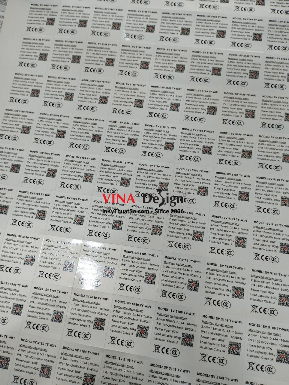 Sản phẩm in tem decal xi bạc dán động cơ rèm cửa, quy cách in: