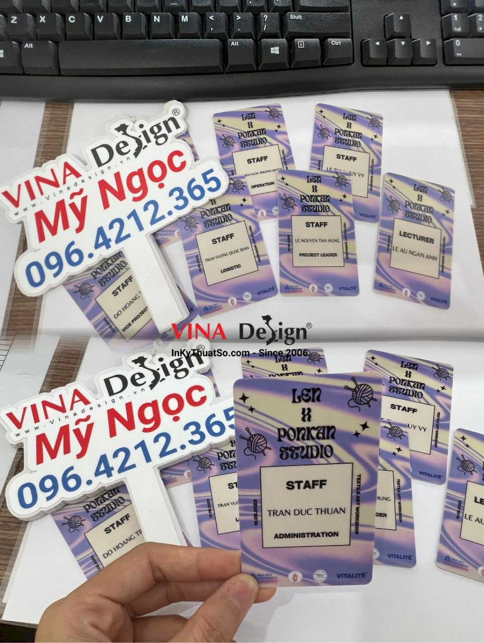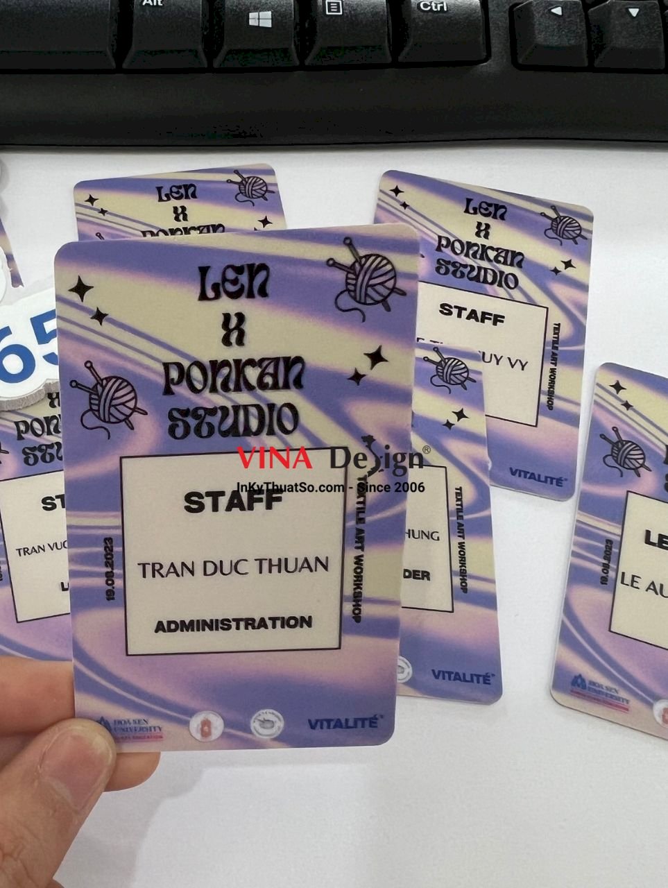 VINADESIGN - Nhận thiết kế & in thẻ đeo ban tổ chức, thẻ đeo hội nghị, thẻ đeo nhân viên sự kiện - In thẻ nhựa PVC cao cấp, thông tin hình ảnh sắc nét - In ấn gia công thẻ đeo sự kiện số lượng ít, số lượng nhiều theo yêu cầu - Công ty in ấn quảng cáo TPHCM uy tín, chuyên nghiệp, có gửi hàng đi các tỉnh từ TPHCM.