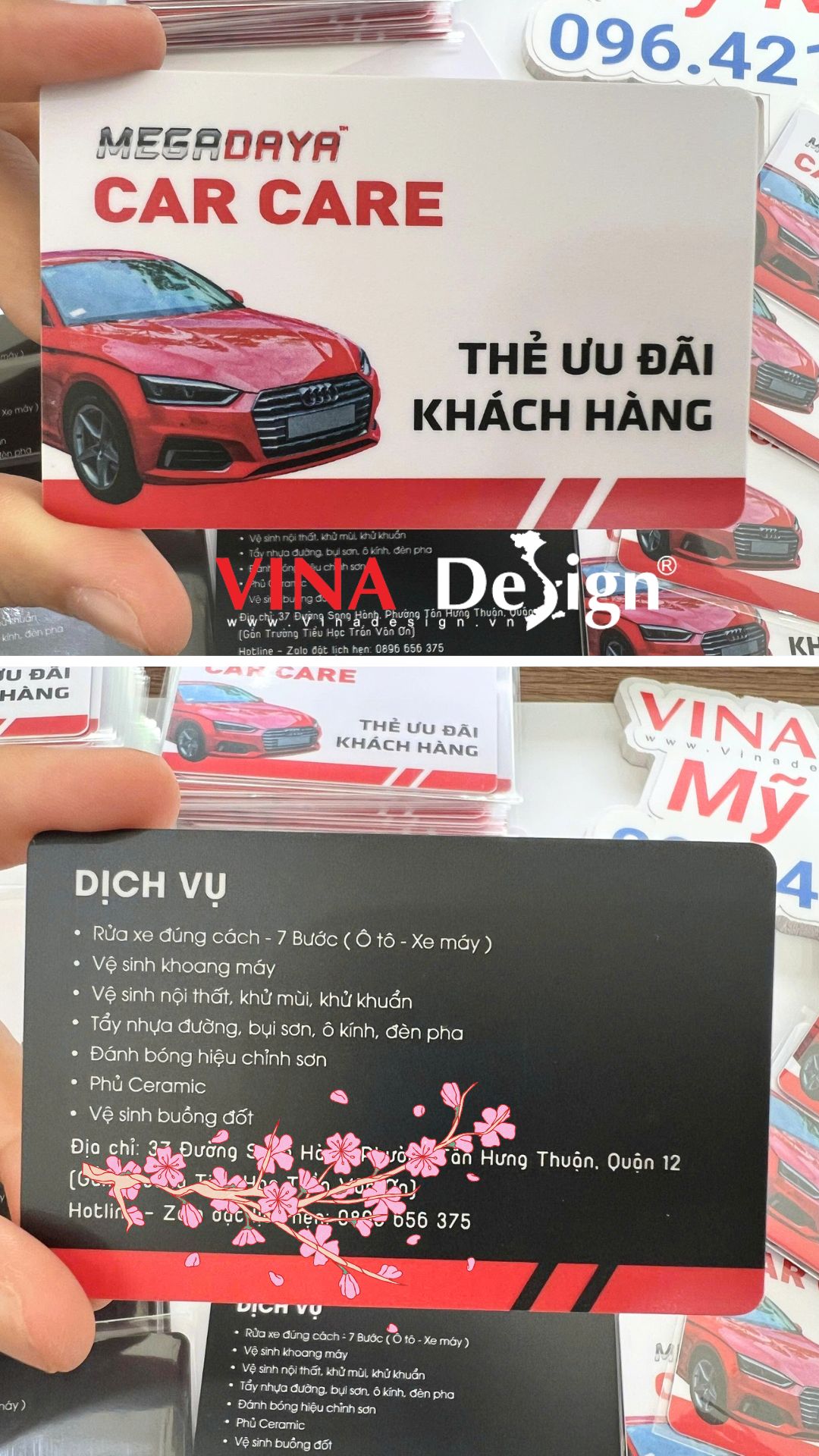 Sản phẩm in thẻ ưu đãi khách hàng cho Salon ô tô vệ sinh bảo dưỡng xe hơi, quy cách in: