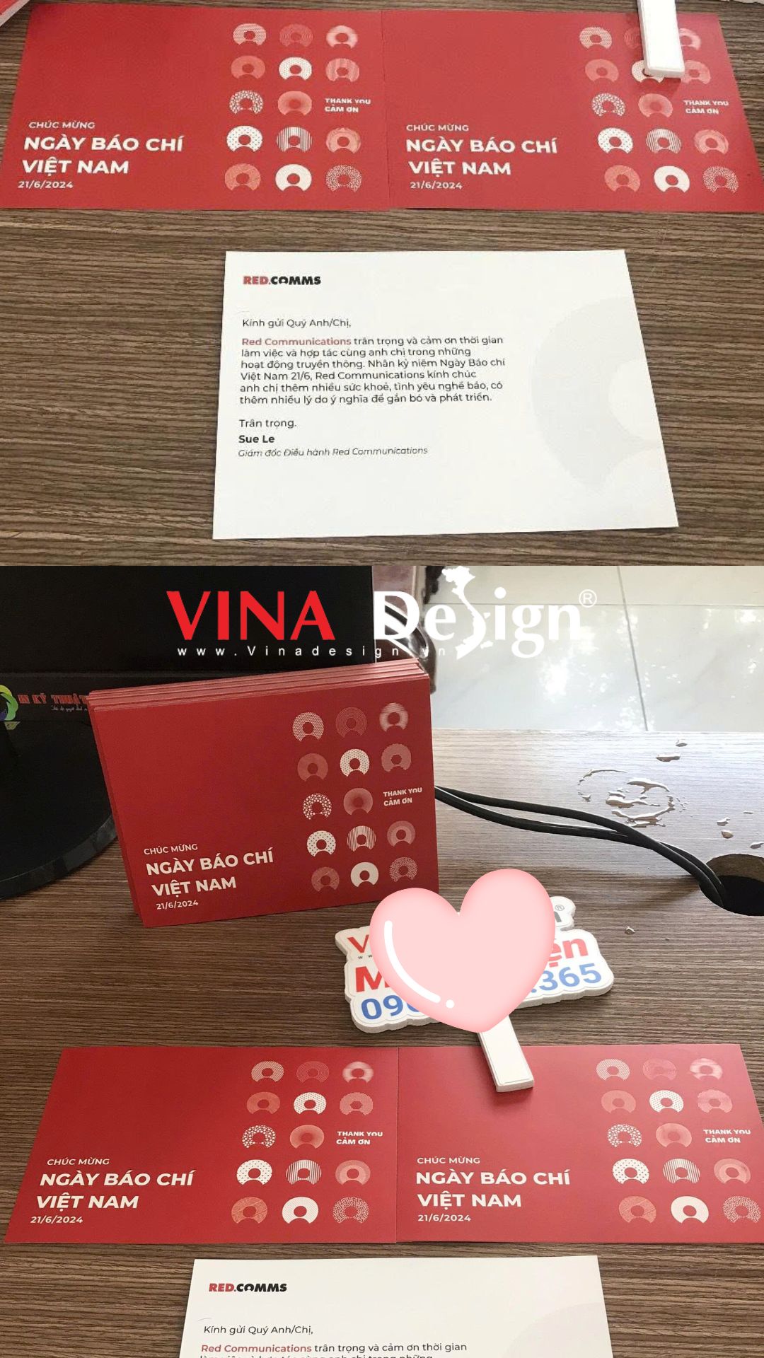 Sản phẩm in thiệp chúc mừng Ngày Báo chí Việt Nam 21/6 theo brand công ty, quy cách in: