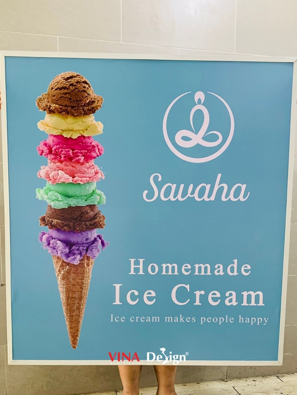 Sản phẩm in bảng hiệu quảng cáo khung sắt căng bạt Hiflex cho cửa hàng kem, quy cách in:
